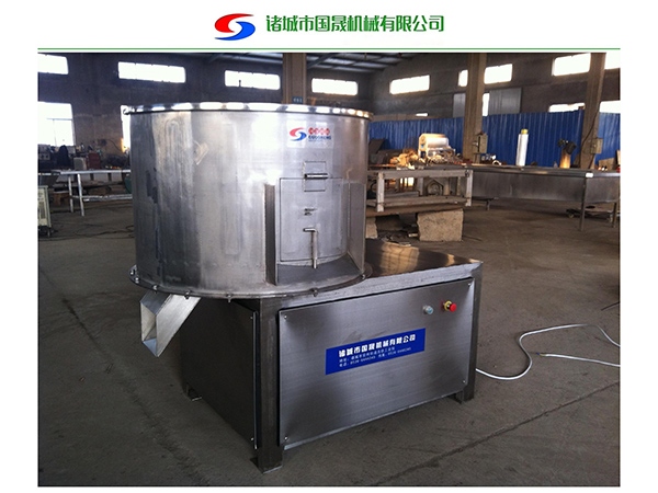 該機(jī)用于豬蹄、豬耳、豬鼻等去毛后的去黃皮、黑皮的工作和去除附著在表面余毛雜物等工作。本機(jī)通過減速機(jī)帶動甩盤轉(zhuǎn)動,使物料在筒內(nèi)高速旋轉(zhuǎn)碰撞、摩擦,從而實現(xiàn)脫黑皮和打毛的要求。